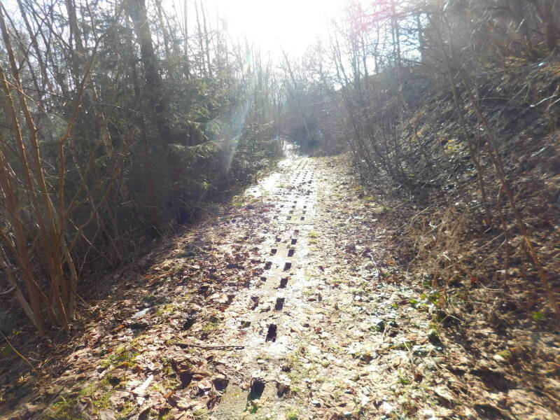 Heute ist der Hang zugewachsen. Der Zaun ist weg. Nur der Kolonnenweg ist noch erkennbar.